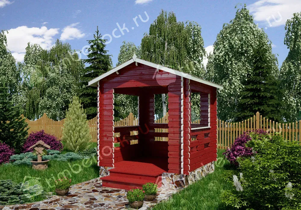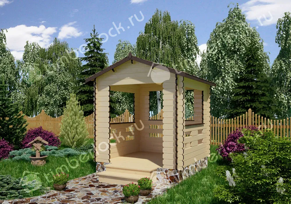При изготовлении беседки используется профилированный брус камерной сушки. Благодаря этому не требуется усадка, и беседка готова к эксплуатации сразу после окончания строительства. Все элементы беседки изготавливаются на производстве, благодаря этому сборка на вашем участке производится за несколько часов. Комплект беседки привозят на участок в разобранном виде. После сборки мусора на участке практически не остаётся.