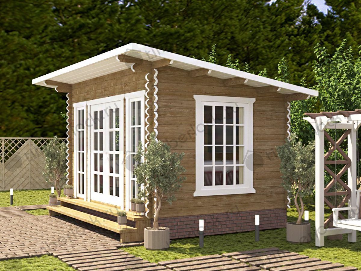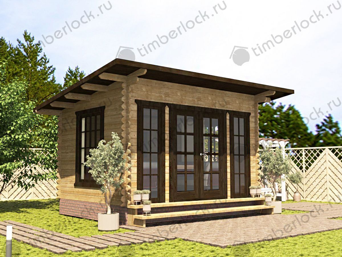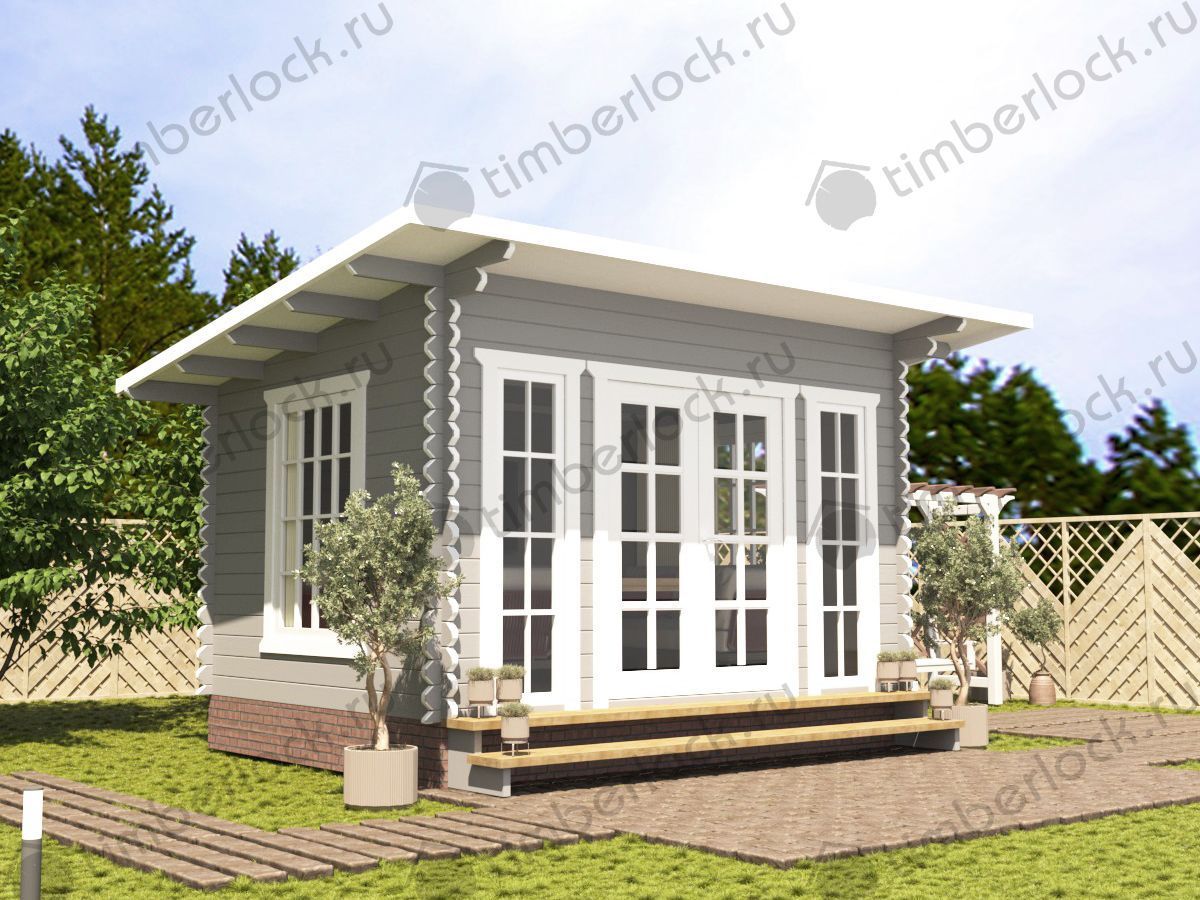 Уютная закрытая беседка для дачи с односкатной крышей и панорамным остеклением.