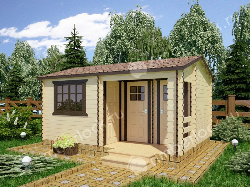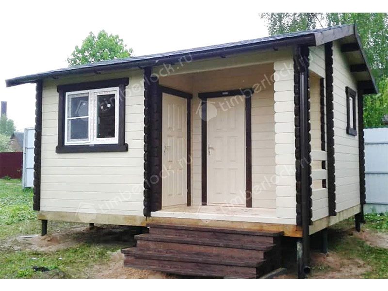 Жилой хозблок для дачного участка: комната отдыха, туалет и душ.