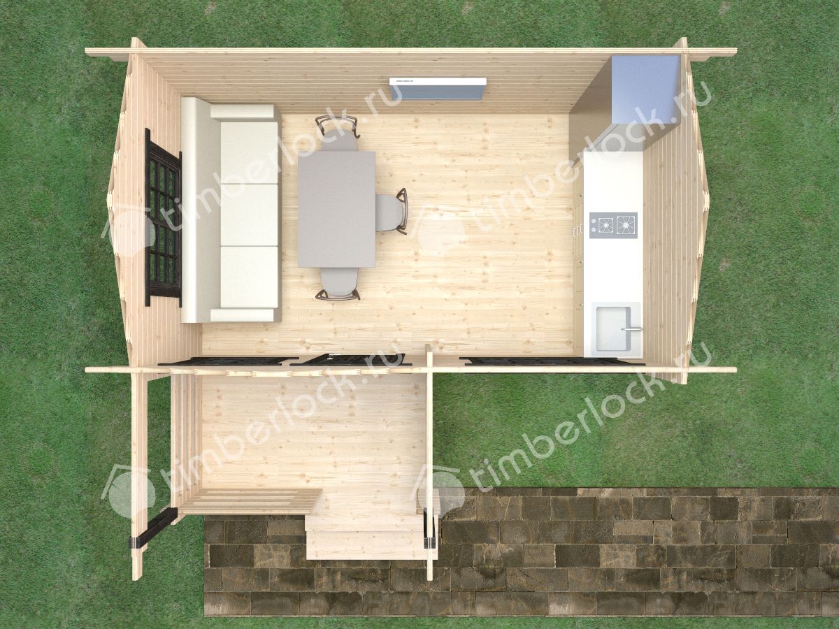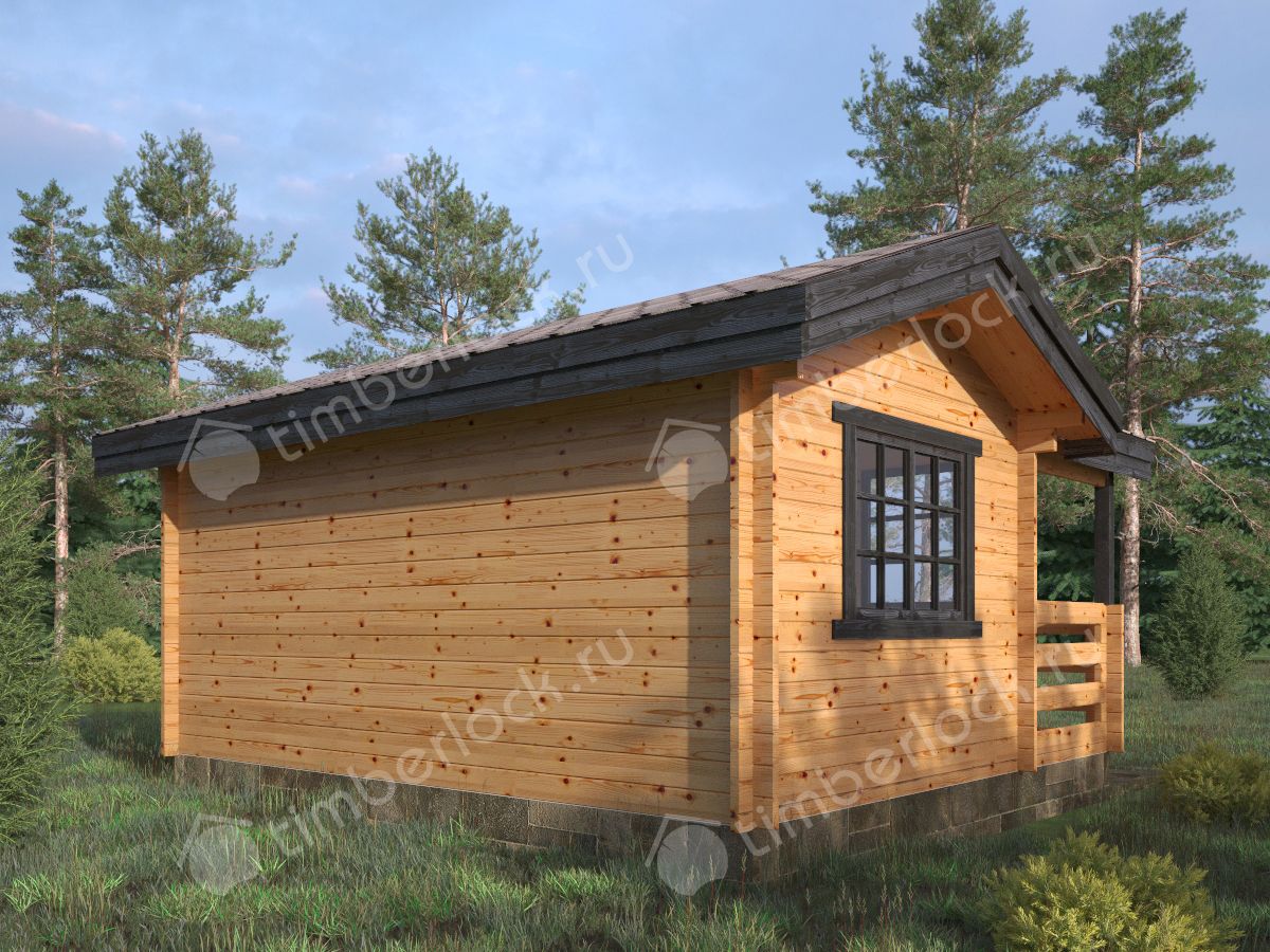 Садовый домик средних размеров с крылечком - отличное решение для небольшого дачного участка. Можно использовать как летнюю кухню или гостевой домик.